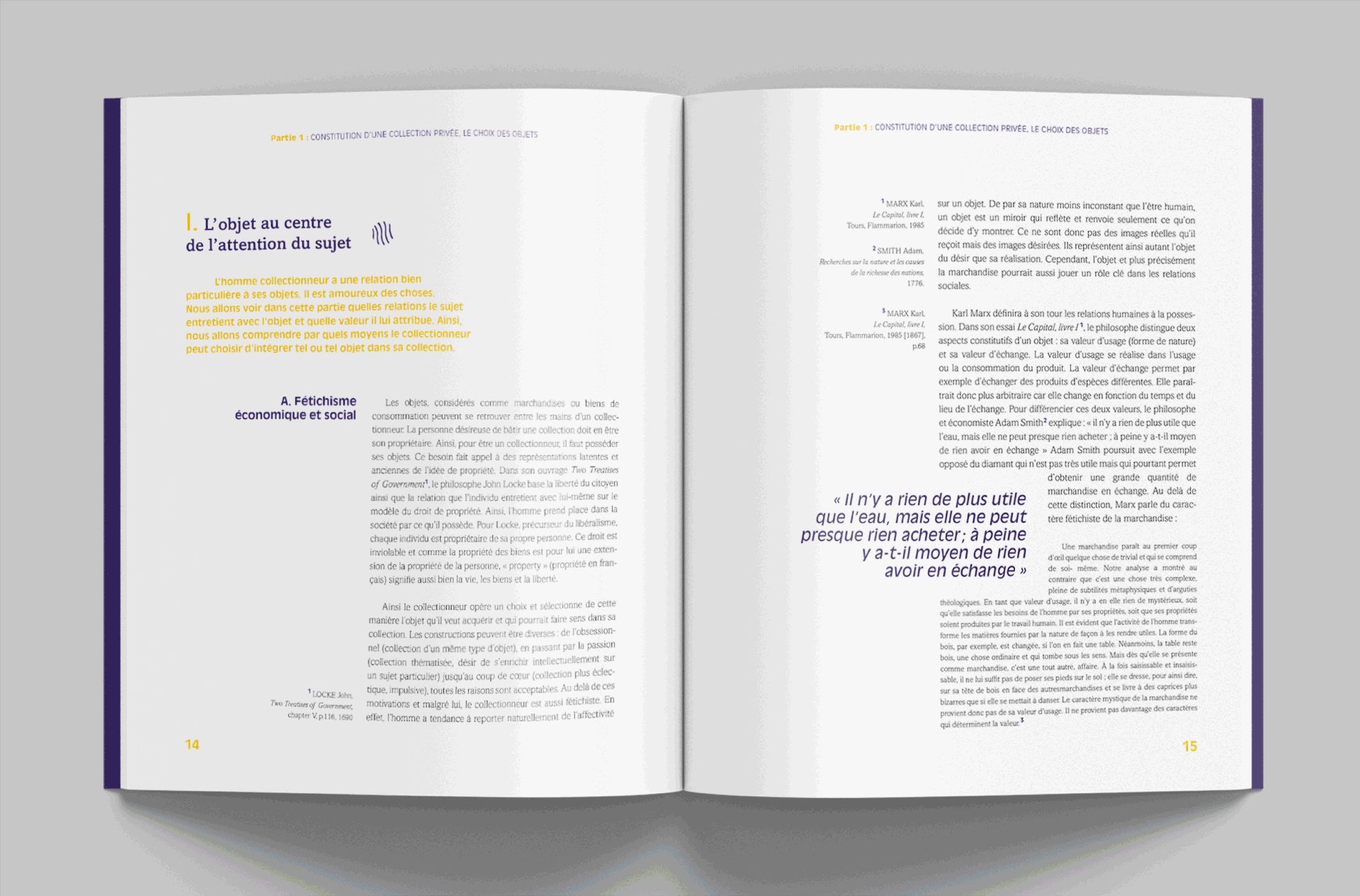 À travers les aspects historiques, philosophiques et sociaux, le Livre Un de ce mémoire tente de tracer les caractéristiques communes aux objets de collections privées. Le Livre Deux quant à lui analyse plus particulièrement les collections d’images issues d’internet et d’une culture visuelle collective.